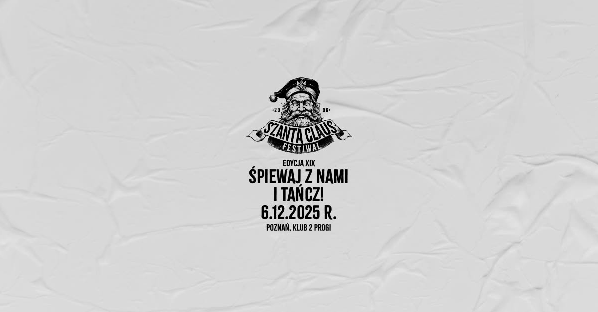 Czarno-biała twarz Świętego Mikołaja. Poniżej tytuł wydarzenia oraz informacje zawarte w treści artykułu. Białe tło stylizowane na pogniecioną kartkę.