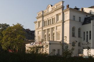 Go down Fredry Street and enter the Castle District, marked out in the early twentieth century. At that time Wilhelm II announced the dismantling of obsolete fortifications that strangled city's development and the fortifications Germans replaced with a representative district, to emphasise city's German character. You are approaching Collegium Maius. The edifice was constructed in 1908 to provide office space for the Prussian Colonisation Committee, an institution committed to buying out land from Poles and populating it with German settlers. Both the internal and external decor referred to German history and culture. At present, the building is operated by the Adam Mickiewicz University and the University of Medical Sciences. A few dozen meters away, you can find a neo-classical edifice of Great Theatre, constructed between 1909-10 as a branch of the Berlin Opera. The front elevation of the theatre is adorned by six Ionic columns, with a sculpture of Pegasus dominating them (the former name of the theatre was 'the Pegasus Edifice'. The theatre can accommodate 900 spectators.