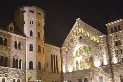 On the east side of the square you can see the monumental edifice of the former Imperial Castle. This huge neo-Romanesque building was designed by Franz Schwechten. It was built between 1905-1910 for Emperor Wilhelm II, who attended the opening ceremony. The style and grand scale were to render the status of the German power, while the Romanesque character of the building was considered as being very Germanic. In the interwar period, the castle was the seat of the Presidents of the Second Republic of Poland and the Poznań University. It was the workplace of the scientists who broke the German Enigma code. During the Second World War, however, the building served as Hitler's residence. It was then that the interior was remade in the Third Reich's style with participation of Albert Speer, Hitler's court architect. The dominant feature of the building is the clock tower, originally 74-m high. After the war, the tower, destroyed during the war, was lowered by about 20 m. The Rose Courtyard features a fountain inspired by the thirteenth-century fountain with lions from Granada's Alhambra. Today the castle houses the 'Zamek' Cultural Centre, the Animation Theatre and many other institutions and hosts numerous exhibitions, meetings and concerts.