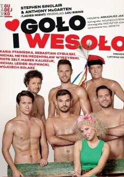 "Goło i wesoło" to opowieść o kilku bezrobotnych mężczyznach z małego miasteczka, którzy postanawiają założyć grupę striptizerską i zarabiać na występach dla miejscowych kobiet. Panowie z "Napalonych nosorożców" - bo tak nazywa się grupa - są niezdarni i kompletnie nieseksowni. Za chudzi, za grubi, nieśmiali i nieudolni, a swoje opory przełamują na naszych oczach. I to jak! Piotr Zelt z zakompleksionego, mieszkającego wiecznie z mamą asystenta proboszcza przeistacza się w rytmicznie bujającego biodrami przystojniaczka, Michał Meyer, mały i zamknięty w sobie facecik, nabiera energii scenicznej a la Michael Jackson, Sebastian Cybulski z podwórkowego cwaniaczka i romantycznego gitarzysty staje się rockandrollowcem na miarę Johna Travolty, Michał Lesień z chamowatego kierownika zamienia się w słodkiego, uwielbiającego swoją tłuściutką seksualność żigolaka, a Marek Kaliszuk.. słów brakuje, w kogo przeistacza się Marek! To trzeba zobaczyć! Najlepsze show komediowe na deskach teatrów grane jest już od 2005 roku! Na scenie WojArt "Goło i wesoło" gościło już blisko 100 razy! I dalej bawi do łez!