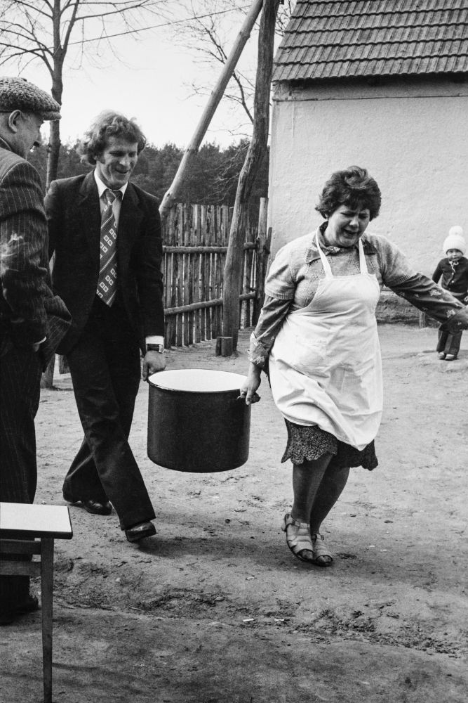 ...było oczywiście dużo skromniej niż dziś, korzystano z dostępnych w okolicy świetlic albo z własnych niewielkich domostw. Mało kto wie, że na gnieźnieńskich weselach podawano gościom tort w kształcie krokodyla. Ta tradycja zanikła. Coraz rzadziej zaprasza się też na wesela księży. Wypitego alkoholu dziś też jest zapewne mniej, w związku z tym niektórych "spontanicznych" zachowań już nie sfotografujemy.