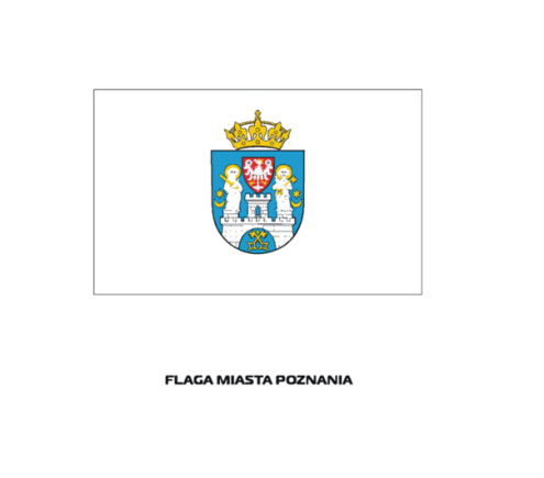 Die Flagge Posens ist der rechteckige Lappen des weißen Materials mit dem in der Mitte placierten Wappen der Stadt.