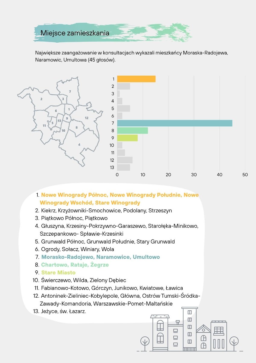 Uczestnicy reprezentowali głównie osoby w wieku 35-54 lat, z wyższym wykształceniem, mieszkające przede wszystkim w północnych i północno-wschodnich rejonach miasta. Nieznaczną większość ankietowanych stanowiły kobiety.