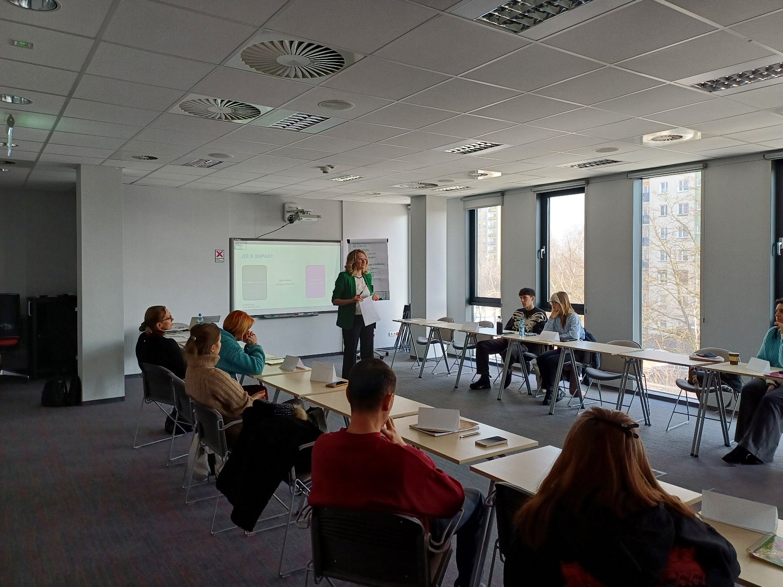 Dziś odbyło się pierwsze spotkanie, podczas którego uczestnicy przeprowadzili analizę swojego dotychczasowego doświadczenia zawodowego i określili możliwe kierunki rozwoju w Polsce. Szkolenie obejmowało praktyczne ćwiczenia i zadania do samodzielnej pracy, które pomogły lepiej zrozumieć własne kompetencje i określić cele zawodowe. Duży nacisk położono na strategię poszukiwania pracy, a także na analizę rynku pracy w Polsce.
