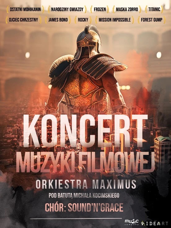 Koncert Muzyki Filmowej - to wyjątkowe wydarzenie muzyczne, które przenosi nas w świat filmowych bohaterów i ich niezwykłych historii. Orkiestra MAXIMUS pod kierownictwem cenionego dyrygenta Michała Kocimskiego wraz z Chórem Sound'n'Grace, łączy na scenie nieprzeciętnych artystów i przeprowadza nas przez dzieje kina, prezentując słynne tematy muzyczne.