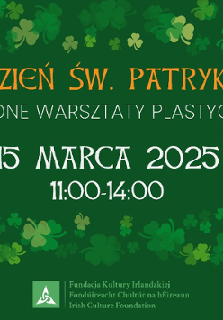 Miłośnicy Irlandii mogą wziąć udział w bezpłatnych "Zielonych warsztatach plastycznych z okazji Dnia św. Patryka", prowadzonych na dziedzińcu Muzeum w godzinach 11-14. Uczestnicy będą mogli między innymi wykleić garnki złotem i zaprojektować własny strój dla tancerzy. Pierwsze 30 osób będzie mogło wysiać także własne koniczynki i zabrać je do domu. Na dziedzińcu gościć będzie również wystawa "Ireland and the birth of Europe" - poświęcona między innymi iluminacji ksiąg. Wydarzeniu, w dniu 15.03., towarzyszyć będzie oprowadzanie po wystawie.