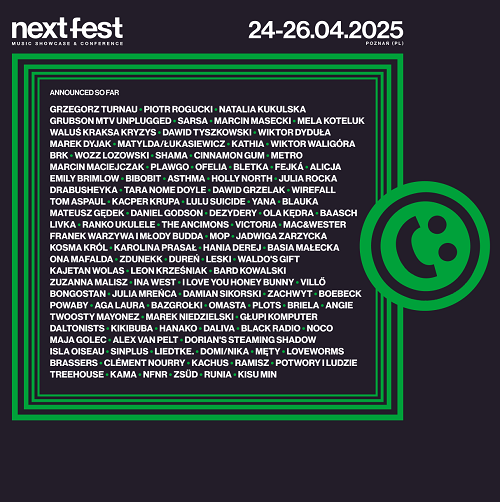 Jeśli wiosna, to Poznań. A jeśli Poznań, to NEXT FEST! A tam ponad 100 artystów i artystek - niezależnych, debiutujących, tworzących muzykę dla wytwórni, rozpoznawanych. Znajdziemy wśród nich tych, którzy grają pop, indie, muzykę elektroniczną, ale także hip-hop, rock czy jazz. Wśród już ogłoszonych są m.in. Piotr Rogucki, Ramisz, Grubson (w wersji MTV Unplugged), Dawid Tyszkowski, Wiktor Dyduła, Mela Koteluk, Matylda/Łukasiewicz, Sarsa, WaluśKraksaKryzys, Marcin Masecki, Wozz Lozowski, Cinnamon Gum, Bletka, Bibobit, Metro i Plawgo. Teraz dołączają kolejni!