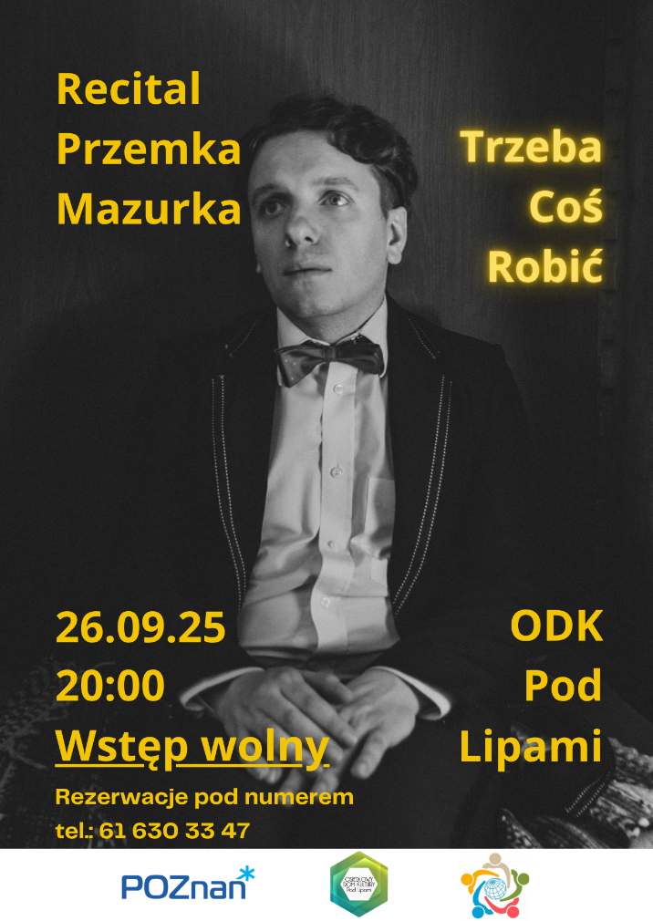 Przemek Mazurek to poznański autor piosenek, a także aranżer, pedagog i twórca inicjatyw muzycznych. Stworzył cykl Wieczorów z Piosenką Nieobojętną, które od ponad siedmiu lat cieszą się dużą popularnością, a także spotkania pt. Śpiewamy Polskie Piosenki (Klub Krąg). Powołał również do życia literacki kabaret Klub Szyderców Bis, który można spotkać na poznańskich scenach. Wspólnie z Teatrem Mozaika jest twórcą wielu spektakli dla najmłodszych, a w 2021 ukazała się jego pierwsza płyta dla dzieci pt. "Muzyczne wygibasy". Autorski program Przemka pt. "Trzeba coś robić", którego fragmenty usłyszymy, to kilkanaście liryczno-kabaretowych propozycji na to, co można w życiu robić lub czego się wystrzegać.