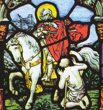 Święty Marcin jest - obok patronów miasta Piotra i Pawła - najbardziej popularnym poznańskim świętym. Urodził się on ok. 316 r. w Panonii na Węgrzech. Jego ojciec był rzymskim legionistą. Kiedy Marcin był dzieckiem, ojciec przeniósł się wraz z całym garnizonem do włoskiego miasta Pavii. Tam Marcin poznał chrześcijan. Mając zaledwie 10 lat, wpisał się na listę katechumenów. Chrzest św. przyjął jednak dopiero w roku 339 (wcześniej bowiem sprzeciwiali się temu jego rodzice).