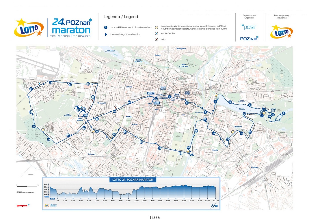 Lotto 24. Poznań Maraton imienia Macieja Frankiewicza odbędzie się 12 października (niedziela) w Poznaniu o godzinie 9:00. Start zlokalizowany jest na ul. Grunwaldzkiej, w pobliżu Hotelu Sheraton Poznań oraz Międzynarodowych Targów Poznańskich. Na przebiegnięcie 42 kilometrów uczestnicy mają maksymalnie 6 godzin.