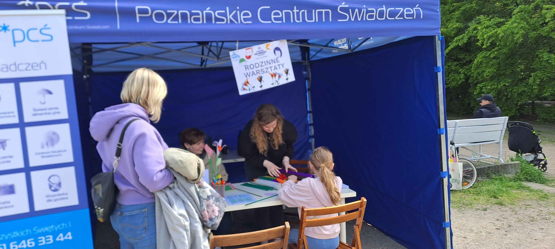 Poznańskie Centrum Świadczeń - Centrum Inicjatyw Rodzinnych na swom stoisku promowali program OK Poznań, Poznańską Złotą Kartę oraz Kartę Dużej Rodziny, a dzieci uczestniczyły w warsztatach plastycznych z kwietnych origami.