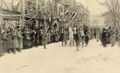 Przemarsz 1 p. Uł Wlkp, Poznań ul. Wjazdowa (obecna Św Marcin) 1 II 1919r.; powrót do koszar po uroczystościach powitania misji koalicyjnej |